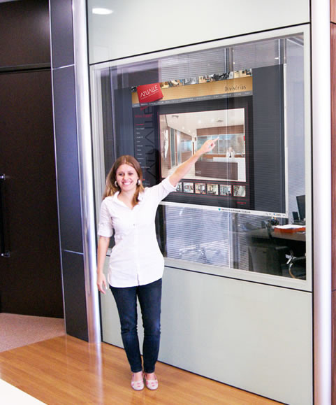 This innovative partition system was introduced at Casa Cor Paraná 2013 in the “Cinema at Home” space by designers Luiz Maganhoto and Daniel Casagrande. The 55-inch touch partition showcased there allowed full access to all computer functions, such as office applications, internet browsing, social media, gaming, CAD, 3D programs, and design applications.